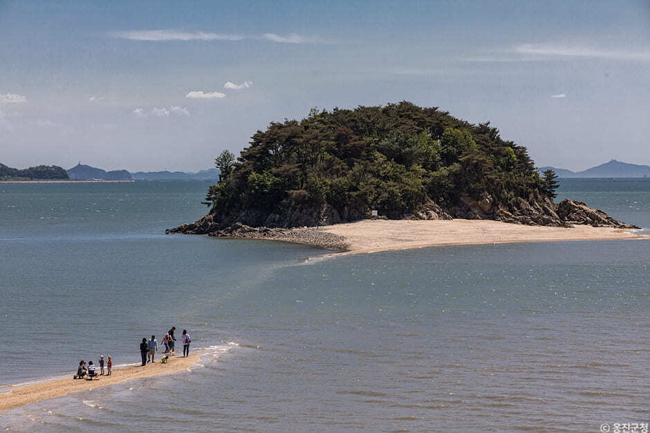 조개 캐는 모습을 뒤로 한 채 조금 더 가면 CNN 선정 한국에서 가장 아름다운 섬 목섬을 볼 수 있습니다. 밀물일 땐 섬이지만 수위가 낮아지는 썰물에는 목섬으로 향하는 모랫길이 열립니다. 사람들은 이 모랫길을 ‘모세의 기적’이라고 부르는데요. 열린 모랫길 위를 걸으며 신기한 지구의 움직임을 느낄 수 있습니다. 모세의 기적을 보기 위해선 썰물 때에 잘 맞춰야 한다는 사실 잊지마세요.